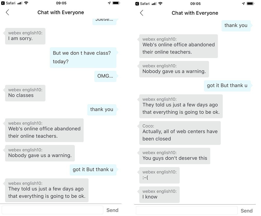 (韦博内部聊天记录显示web云中心在没有事先通知的情况下突然抛弃了在线教师们)