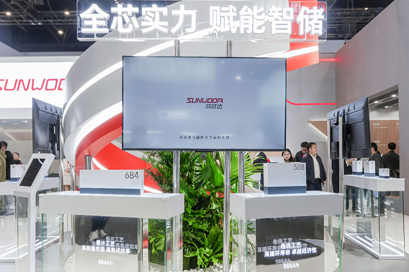 展会现场,欣旺达集中展示了覆盖102Ah、280Ah、314Ah、588Ah、684Ah的完整储能电芯矩阵,形成适配不同系统设计需求的容量梯队,彰显了其全维度技术布局能力。其中,102Ah、280Ah、314Ah电芯作为经过市场长期验证的成熟产品,在一致性、循环寿命与安全性能方面通过大规模项目实践检验,为储能系统长期稳定运行提供坚实基础。