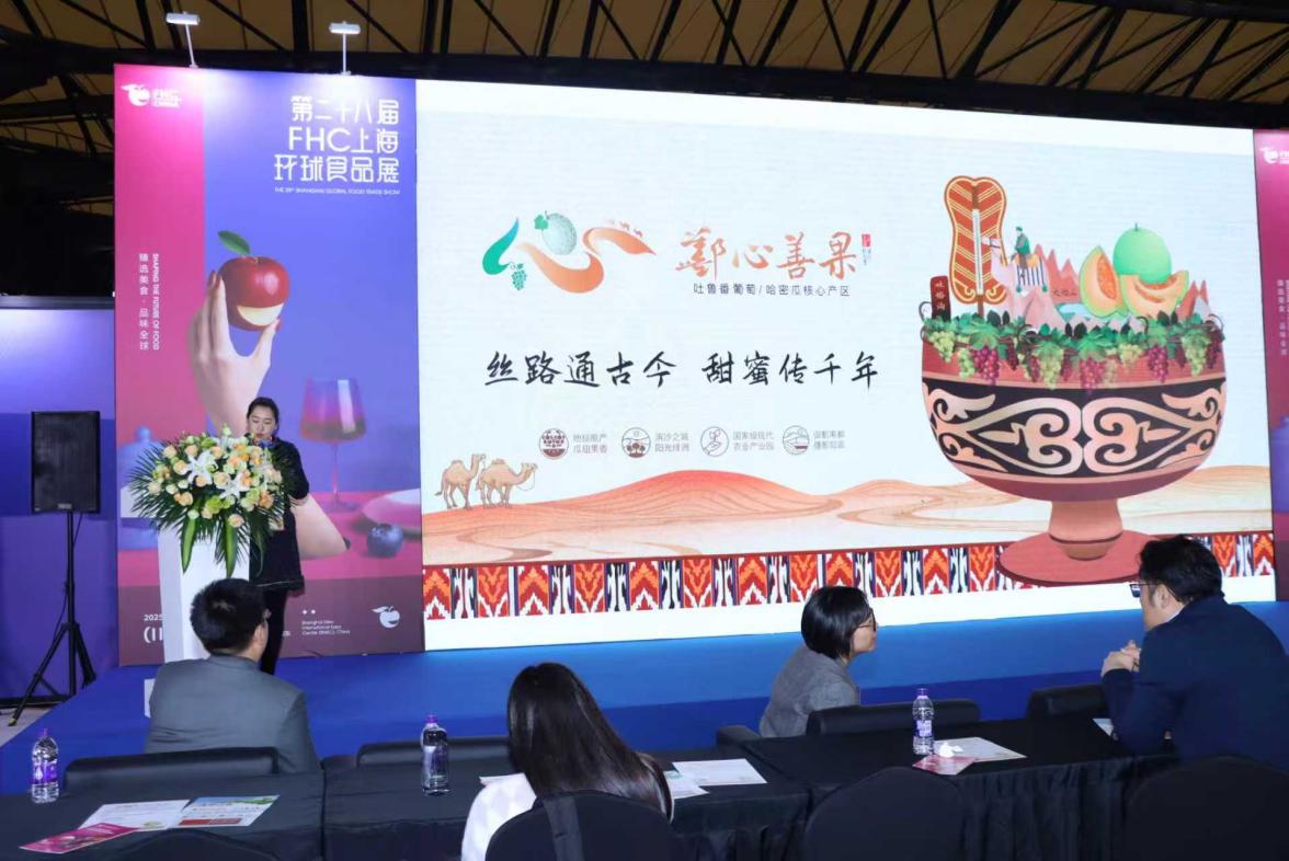 此次国际论坛采用政策解析、案例分享、品牌推介、圆桌对话、展览展示等形式,吸引了众多中欧各国地理标志领域专家、企业代表及采购商参与。新疆吐鲁番市鄯善县受邀参会,重点推介农业区域公用品牌 “鄯心善果”,新疆农产品品牌建设与产销服务中心杨蕾蕾科长参与推介。