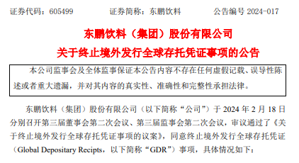 对于此次GDR终止发行,东鹏饮料在公告中表示,是综合考虑多方面因素并结合公司实际情况做出的审慎决策,不会对公司正常经营和持续发展造成重大不利影响,不存在损害公司全体股东特别是中小股东利益的情形。