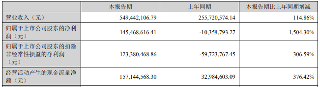 2025年上半年,翰宇药业营业收入为5.49亿元,同比增长114.86%;归属于上市公司股东的净利润1.45亿元,上年同期为-0.10亿元;归属于上市公司股东的扣除非经常性损益的净利润为1.23亿元,上年同期为-0.60亿元。