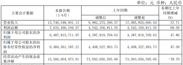 中国银河2025年半年度报告显示,公司上半年实现营业收入137.47亿元,同比增长37.71%;归属于母公司股东的净利润64.88亿元,同比增长47.86%;归属于母公司股东的扣除非经常性损益的净利润64.85亿元,同比增长47.09%。