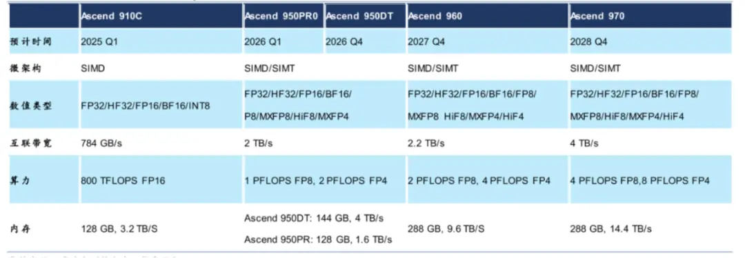 图:华为昇腾芯片进展 数据来源:长城证券,36氪整理