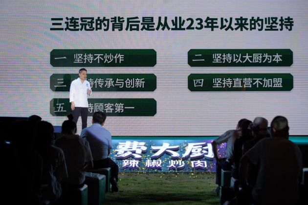 费大厨创始人费良慧表示对湘菜品质的五大不懈坚持是费大厨获得必吃菜辣椒炒肉三连冠荣誉的根本原因。