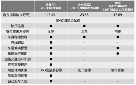 而在智能安全方面,哈弗F7x同样是三款车型中最让人惊喜的。搭载L2级自动驾驶功能,哈弗F7x集道路交通标识识别、车道偏离预警、车道保持辅助等诸多驾驶辅助“黑科技”于一身,甚至还拥有新手司机“神器”——360全景影像及半自动泊车功能!可以说,哈弗F7x正竭尽所能地为年轻消费者带来智能、便捷、安全的潮智出行体验。