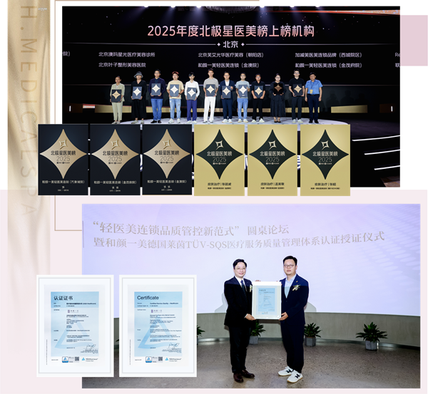 和颜一美此次开启南方战略布局新篇章,并非一蹴而就,而是厚积薄发的成果。长期以来,和颜一美在医疗服务上,始终以求美者需求为导向,力求为每一位求美者提供贴心、周到的个性化服务;在医疗质量方面,构建了高水平的质量管控体系,每一个环节都精益求精。正是这份对品质的执着追求,让和颜一美在医疗服务与医疗质量上均达到了行业领先水平,通过了德国莱茵TÜV认证,并荣获美团医美北极星及中整协A级认证,这些沉甸甸的荣誉是对和颜一美过往努力的高度肯定,更是其专业实力的有力证明。