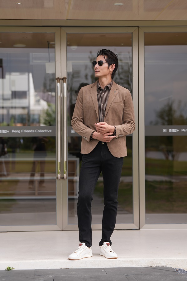 若是想要穿出更都市的层次感与时尚度。可尝试将单西与高领针织衫叠穿,搭配斜纹裤和皮革运动鞋,打造兼具保暖与风格的都市造型。不同材质的碰撞——如羊毛、棉质和皮革——能为整体造型增添丰富层次。
