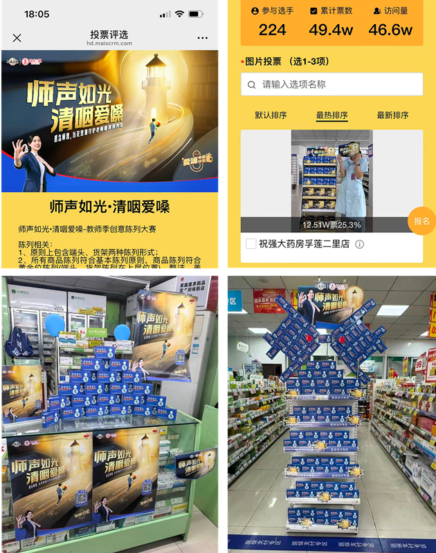 在线下终端层面,达仁堂清咽滴丸携手全国2000余家连锁药店门店,同步开展教师节主题活动。各门店精心布置温馨装饰,悬挂“师声如光,清咽爱嗓”主题海报,营造浓厚的节日氛围。活动期间,教师及消费者进店即可获赠精美鲜花,用芬芳传递对教师的诚挚祝福;参与门店互动还可领取爱嗓定制礼包,内含达仁堂清咽滴丸等护嗓好物;扫描门店二维码参与 H5 互动,更有机会抽取品牌定制大奖,多重福利让消费者在感念师恩的同时,切实收获护嗓关怀。