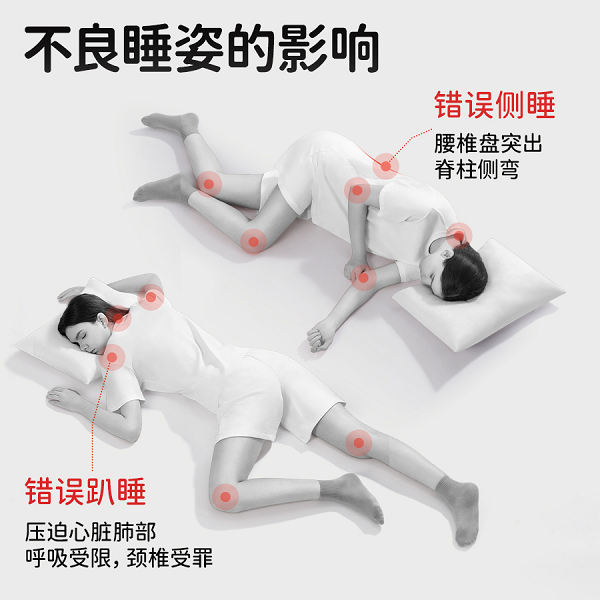 1.健康睡姿是基础。不良睡姿容易导致血液循环不畅、肌肉劳损,甚至引发圆肩驼背、脊柱侧弯等体态问题。而健康的睡姿能有效承托头颈、腰背与四肢,减轻身体压力,确保血液循环顺畅,帮助肌肉和关节在睡眠中得到真正的放松与修复,从根源避免晨起疲劳和身体酸痛。