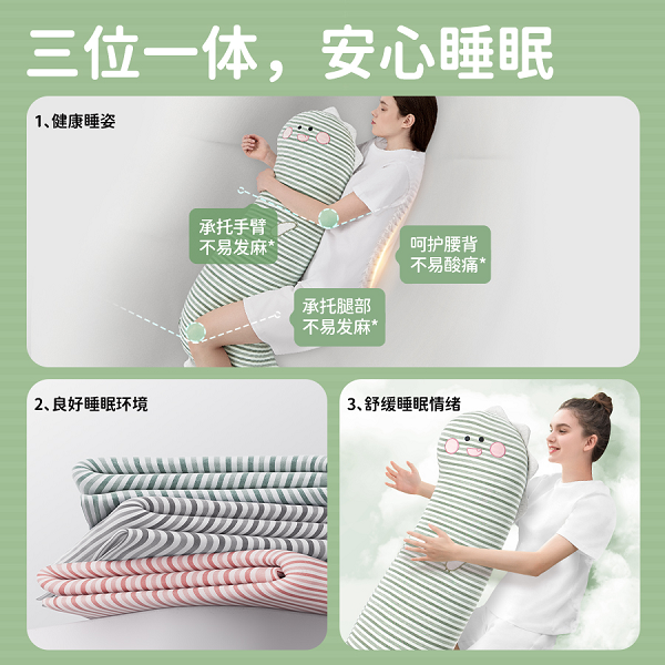 值得注意的是,夜间由于身体处于持续修复阶段,保持健康睡姿显得尤为关键。白天我们可通过有意识的调整保持良好坐姿;但夜晚进入无意识睡眠状态后,维持健康睡姿则需借助外部工具。乐瓜睡觉抱枕(Sleeping Body Pillow)正是用户夜间健康睡姿的“守护者”。