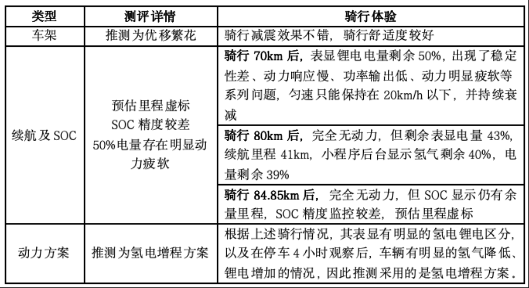 根据对外公开资料显示,同样采用该氢能龙头企业的氢电直驱式共享氢能电单车,在全国已实际运营2500辆,运营时间已超过一年半,历经零下17℃和零上42℃的严寒酷暑的环境考验,里程总数超过700万公里。其7月26日发文测评同款车型,实际里程为118.58km,与本次测评数据基本一致,更加印证了其续航稳定性、技术可靠性与市场认可度。