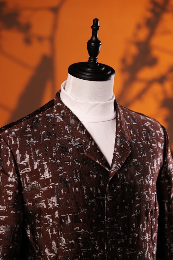 此外,弥悟特别推出香云纱特别款,选用岭南传统珍贵织造工艺香云纱,质感古朴雅致,具有独一无二的光泽与肌理。每一件香云纱款,都是对中国非遗工艺的致敬,也是东方男性礼服的独特表达。