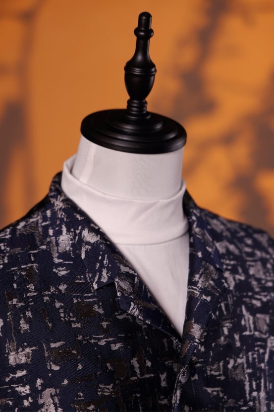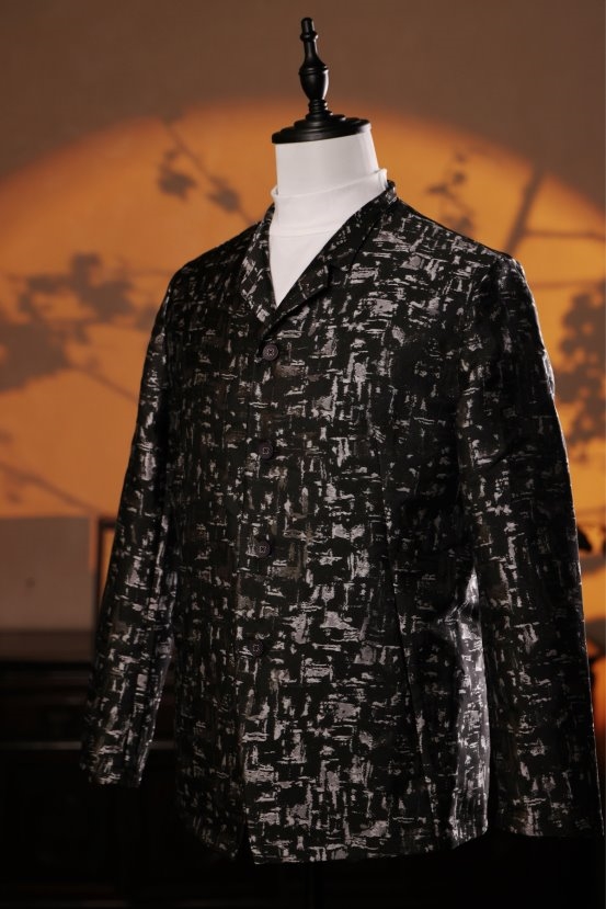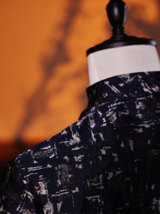 可变立领设计:一衣两穿,既可挺拔如立领中式,展现东方文士的儒雅;又可翻折成西式领型,满足多样场合的需要。