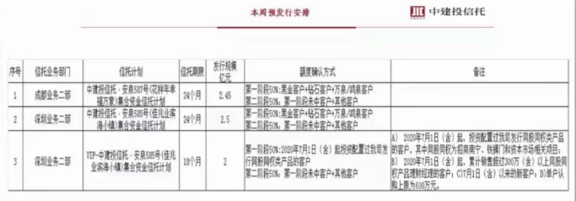相关信披资料显示,安泉585号总募集规模为4.497亿元,对投资人半年付息,下一次付息时间为6月15日。此外,6月30日将是首期产品到期日,中建投信托称,上述事项可能导致信托计划存在无法按期、足额实现信托收益并收回信托本金的风险。