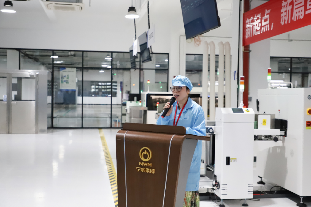 仪式开始后,智能水表制造厂厂长宓裕蛟发表致辞。他在讲话中提到,智能模块制造车间的升级改造具有里程碑意义,不仅标志着公司“智造升级”战略的落地,更是宁水集团产能突破的“新引擎”,有力支撑全球水务客户对智能水表产品“高品控、快交付”的需求。从核心电子模块到整机集成,全流程自主把控,让客户享受到更省心、更优质的产品服务,为业务部门拓展市场、承接订单注入强劲信心。