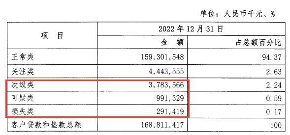 2022年末,张家口银行不良贷款余额50.66亿元,上年末为39.22亿元;不良贷款率3.00%,上年末为2.56%;拨备覆盖率为128.97%,上年末为142.84%。