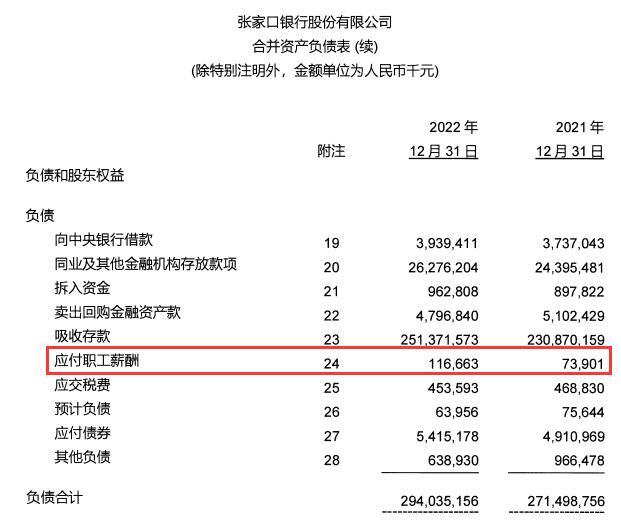 截至2022年末,张家口银行应付职工薪酬为1.17亿元,上年末为7390.1万元。