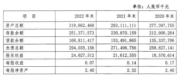 截至2022年12月31日,张家口银行资产总额为3186.62亿元,上年末为2931.11亿元;负债总额为2940.35亿元,上年末为2714.99亿元;存款余额2513.72亿元,上年末为2308.70亿元;贷款余额1688.11亿元,上年末为1534.92亿元。