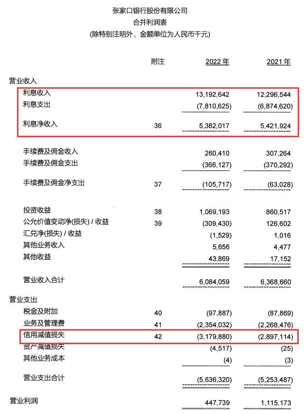 2022年,张家口银行计提信用减值损失31.80亿元,上年同期为28.97亿元。
