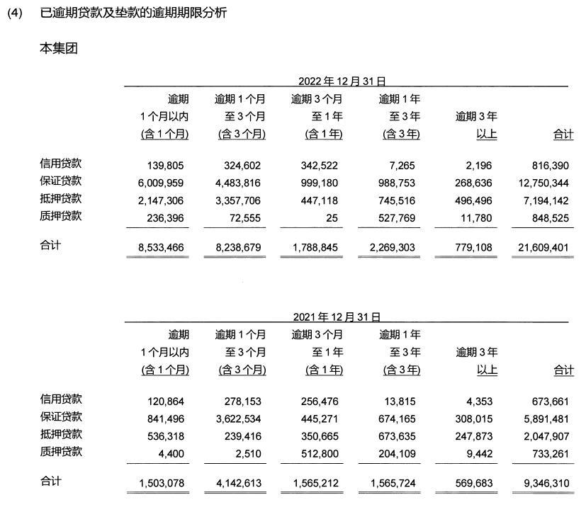 截至2022年12月末,集团逾期贷款216.09亿元,上年末为93.46亿元。