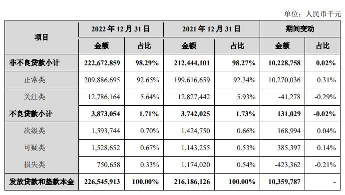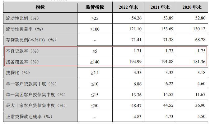 2022年末,兰州银行不良贷款为38.73亿元,上年末为37.42亿元;不良贷款率为1.71%,上年末为1.73%;拨备覆盖率为194.99%,上年末为191.88%。