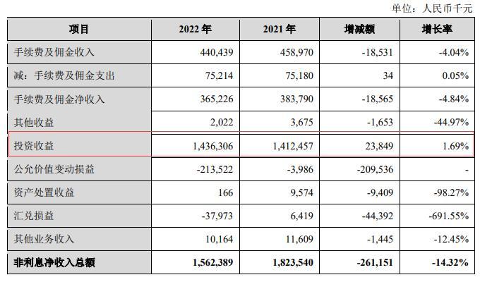 2022年,兰州银行投资收益为14.36亿元,同比增长1.69%。