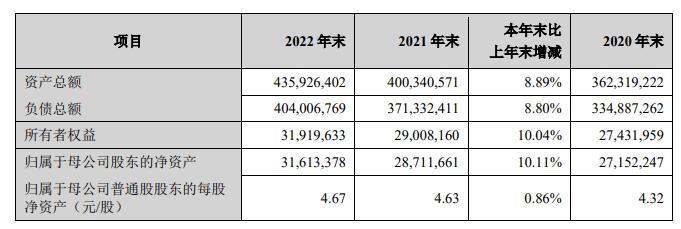 年报显示,截至2022年末,兰州银行资产总额4,359.26亿元,较年初增长8.89%;存款余额3,230.70亿元,较年初增长5.70%;贷款余额2,201.31亿元,较年初增长4.77%。