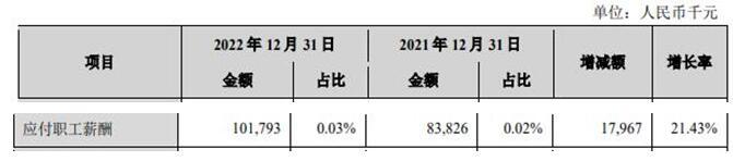 截至2022年末,兰州银行应付职工薪酬为1.02亿元,2021年末为8382.6万元。