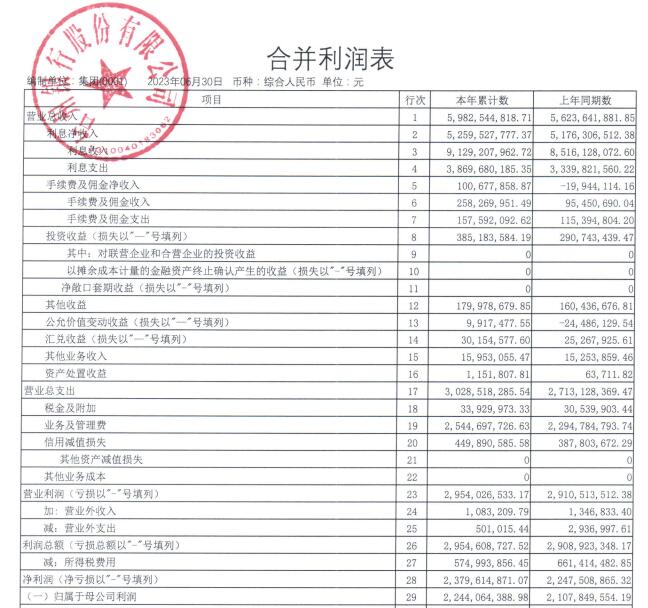 近日,台州银行股份有限公司(以下简称“台州银行”)发布2023年二季度信息披露报告。2023年上半年,台州银行实现营业总收入59.83亿元,同比增长6.38%;净利润23.80亿元,同比增长5.88%;归属于母公司的净利润22.44亿元,同比增长6.46%。