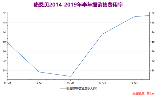 上半年,公司持续加大对基层及民营市场网络的开发及专业化学术推广的投入,同时加强新零售业务线的营销队伍建设、营销网络机制建设,积极探索营销模式的创新及突破,2019年1-6月,公司的销售费用为18.63亿元,同比增长2.33%,并且近几年公司的销售费用率增幅较大,从2016年的25.53%增长到2019年半年报的51.04%。