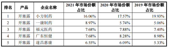 小方制药及同业公司开塞露市场份额占比情况