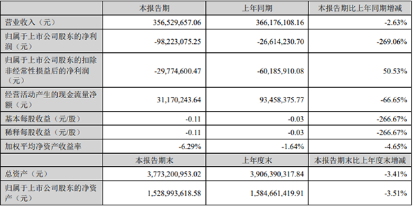 短暂回暖后,业绩又由盈转亏,2022年一季度实现营收1.67亿元,同比减少6.36%;归属于上市公司股东的净利润亏损5765.5万元,由盈转亏。半年报显示,亏损持续中。