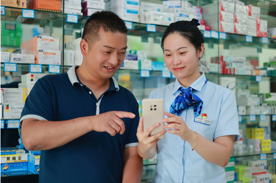 (建设银行贵州省分行客户经理上门指导当地药房经营者通过“建行惠懂你”App办理“商户云贷”业务。)