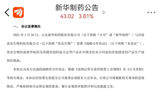 今年,新华制药还搭上了新冠药的热门概念。2022年4月26日,新华制药宣布与国产新冠口服药厂商真实生物签署《战略合作协议》,真实生物同意新华制药为其拥有的阿兹夫定等产品在中国及经双方同意的其他国家的产品生产商和经销商。上述合作公告发布后,一直到5月10日,新华制药A股连续多日涨停,港股在4月27日直接暴涨50%。