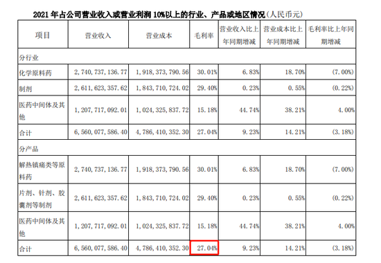 新华制药未在财报中具体披露布洛芬原料的毛利率,从具体业务来看,新华制药制剂业务和原料药的毛利率均在30%左右,据亨迪药业(43.990, -5.41, -10.95%)此前招股书中披露的数据,其布洛芬原料药2019年、2020年及2021年1-6月的毛利率分别为49.75%、49.6%、32.79%。据业内人士介绍,大宗原料药各厂商的生产工艺、技术水平并无太大差异,产品附加值低,各厂商控制生产成本,从而获得低成本优势。