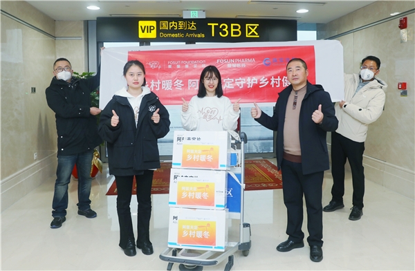 在重庆,1月16日下午16时,复星基金会向酉阳县捐赠的首批600瓶阿兹夫定运抵重庆江北机场,随后转交给酉阳县卫健委相关负责人。这600瓶药连同价值15万元的爱心包将分送到酉阳县41个村卫生室,助力酉阳县的基层防疫。据悉,重庆市除酉阳之外,捐赠给奉节、石柱、秀山、巫溪四县的药品也将在后续派送到位。