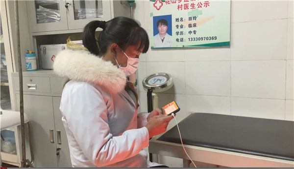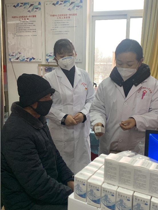(甘肃省东乡县河滩镇汪胡村卫生院院长马玲燕、村医韩胜红为村民开药)