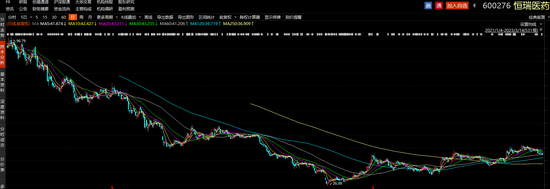 业绩的重压挥向了二级市场。恒瑞医药自2021年1月见顶之后,股价开始了漫长的震荡走低。截至3月14日收盘,恒瑞医药股价报收41.48元/股,较当年高点已“腰斩”。