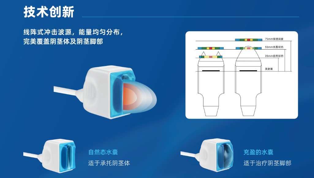 一直以来,体外冲击波在治疗泌尿系统结石、骨肌系统疾病领域的临床疗效得以肯定。《中国男科疾病诊断治疗指南与专家共识(2016版)》指出:体外低能量冲击波治疗正成为一种治疗ED的新疗法,不论在短期临床效果,还是生理影响方面都有积极的作用。另外,低能量冲击波还可以改善阴茎硬结症、慢性非细菌性前列腺炎等疾病。突破传统治疗极限,冲击波治疗ED将以其安全性、持久性、兼容性等诸多优点,成为 ED 治疗的新趋势。