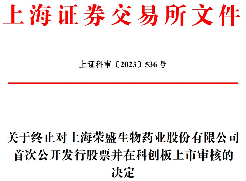 上交所网站昨日发布关于终止对上海荣盛生物药业股份有限公司(简称“荣盛生物”)首次公开发行股票并在科创板上市审核的决定。