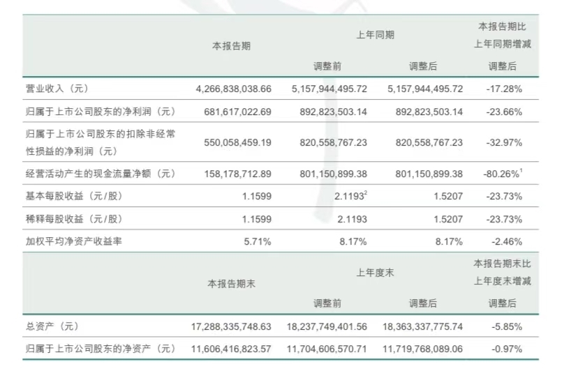 8月15日,稳健医疗发布2023年半年度报告,中报显示,公司2023上半年营业收入为42.67亿元,同比下降17.28%;归属于上市公司股东的净利润为6.82亿元,同比下降23.66%;扣非净利润5.5亿元,同比下降32.97%。