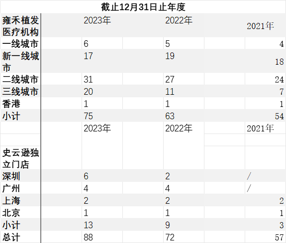 雍禾医疗财报表示,新增植发机构“主要分布于华南、华东和华中的二三线城市,并新增对西北地区如宁夏和青海的覆盖”。