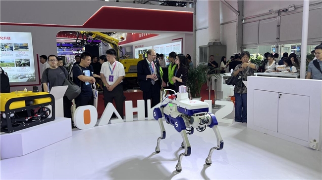 展区现场,两款配备六轴机械臂的机器人正在进行动态演示,灵巧精准的动作犹如"特种兵"展示精湛技艺。据介绍,这两款机械臂机器人已在电力电网和轨道交通行业发挥重要作用。