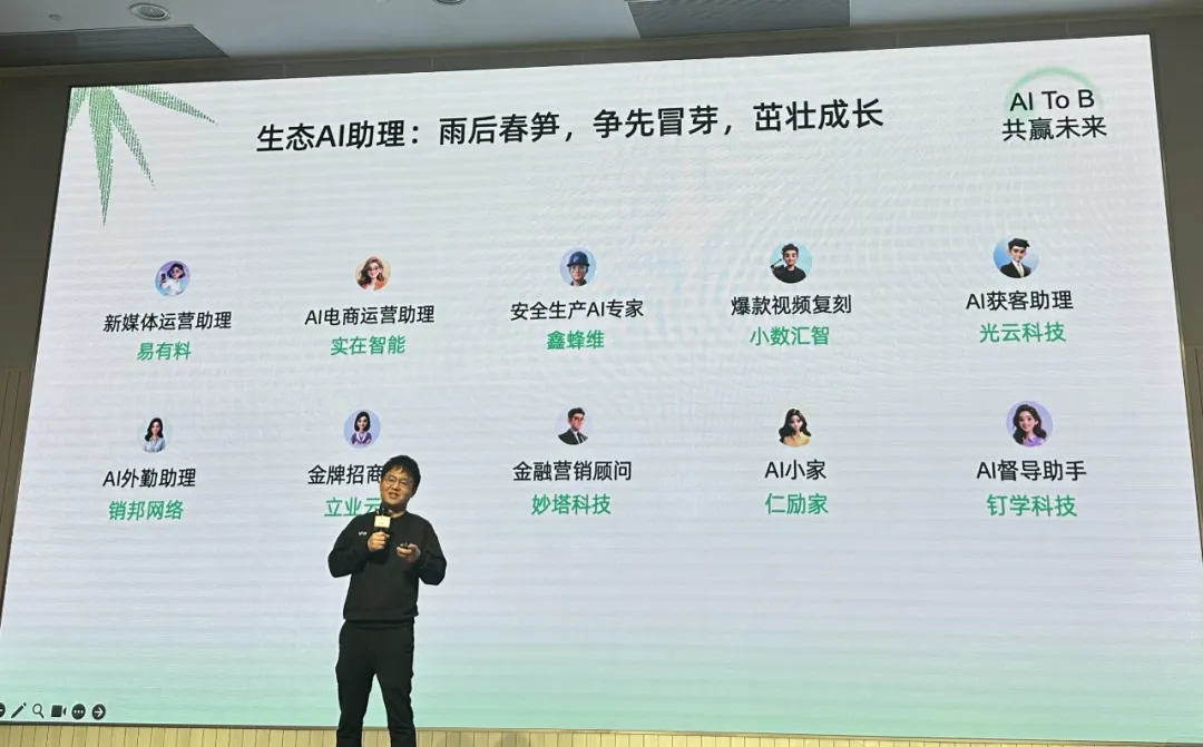 当日下午,钉钉AI to B分会场顺利召开,钉钉副总裁易统发表主题演讲,并明确坚定开放的AI生态战略,现场重磅发布AI生态助理首批产品,光云科技旗下有成CRM的AI获客助理成功入选,成为钉钉AI生态首批落地的核心应用之一,携手钉钉为企业获客场景注入智能新动能。