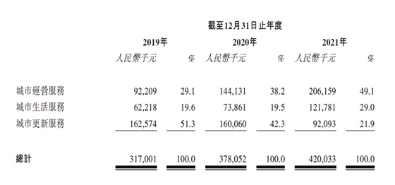 目前,中湘美好主要开展三项业务,分别是城市运营服务、城市生活服务和城市更新服务。2019-2021年,中湘美好城市运营服务收入占比分别为29.1%、38.2%、49.1%;城市生活服务的收入占比分别为19.6%、19.5%、29%;城市更新服务的收入占比分别为51.3%、42.3%、21.9%。