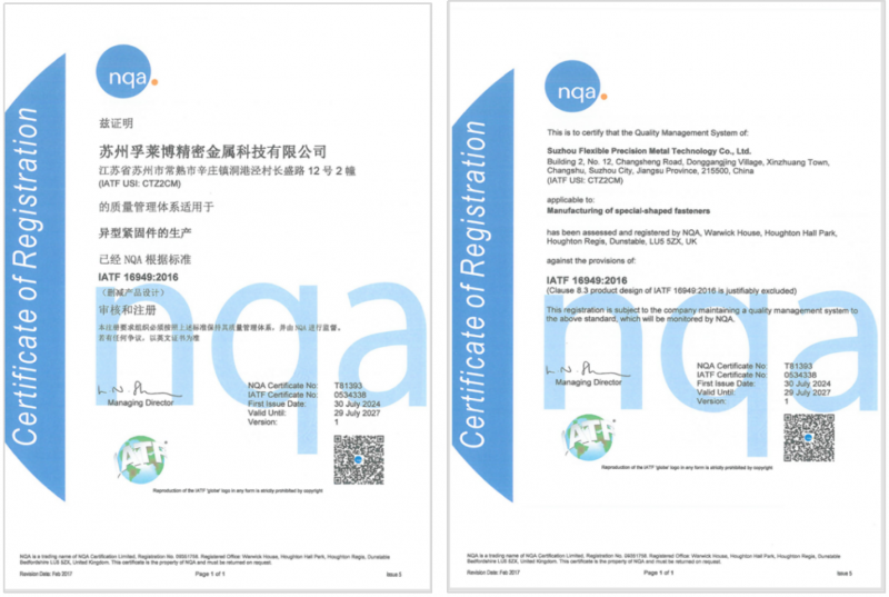苏州孚莱博成立于2011年,公司专注于异形非标汽车冷锻零部件,广泛应用于汽车底盘、发动机、变速箱、刹车系统、水泵等领域。产品已通过IATF16949认证、ISO14001认证以及ISO 45001能源管理体系认证,具备全面的质量管控体系和环保合规能力,能够为汽车整车制造商提供高品质、稳定可靠的产品。