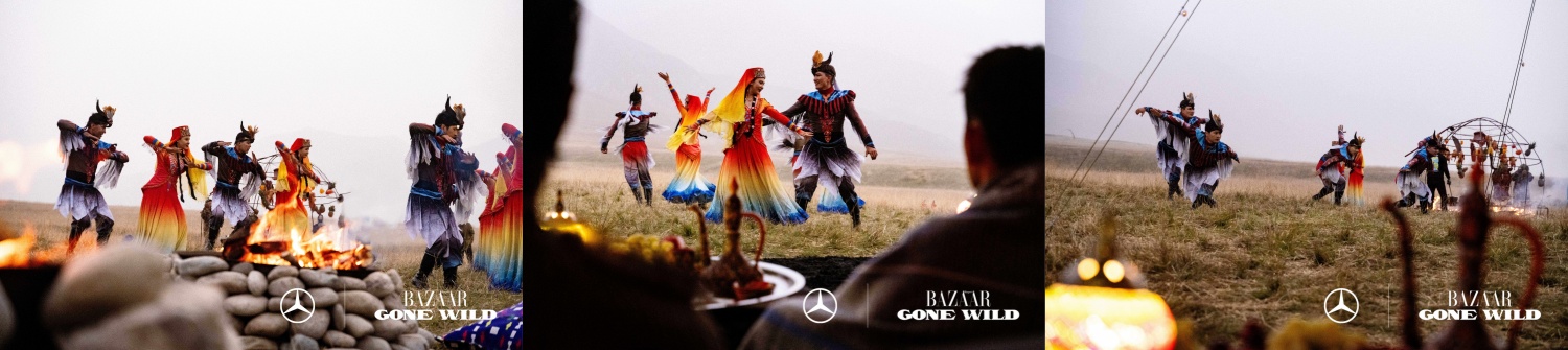 当嘉宾抵达雪山脚下,来到现实与想象的交界,迎客的马奶酒带来秘境的第一口甘甜,BAZAAR艾德莱斯丝巾留下一抹金黄,至此,「野人之子」们的梦中之门向他们缓缓开启。