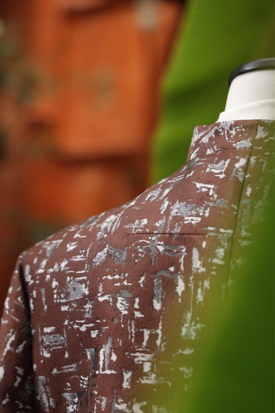 此外,弥悟特别推出香云纱特别款,选用岭南传统珍贵织造工艺香云纱,质感古朴雅致,具有独一无二的光泽与肌理。每一件香云纱款,都是对中国非遗工艺的致敬,也是东方男性礼服的独特表达。