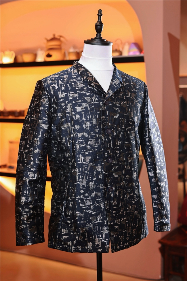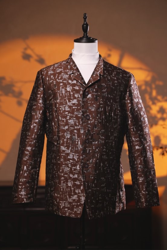 可变立领设计:一衣两穿,既可挺拔如立领中式,展现东方文士的儒雅;又可翻折成西式领型,满足多样场合的需要。