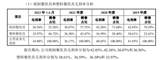 细看恒鑫生活主营业务毛利率中的两项业务,纸制餐饮具和塑料餐饮具也都下滑明显。